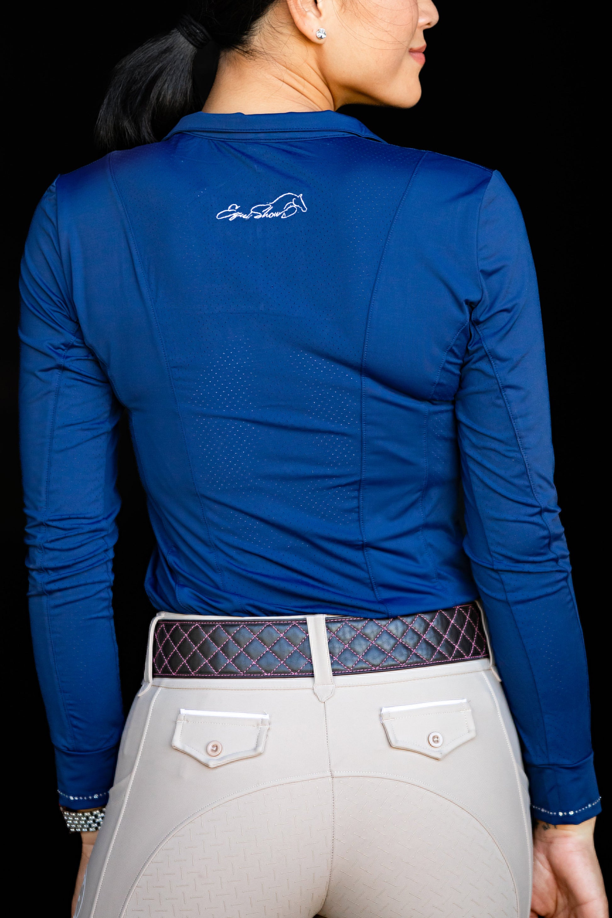 Crystals on front with half zip down, crystal horse & crystals on the cuffs!