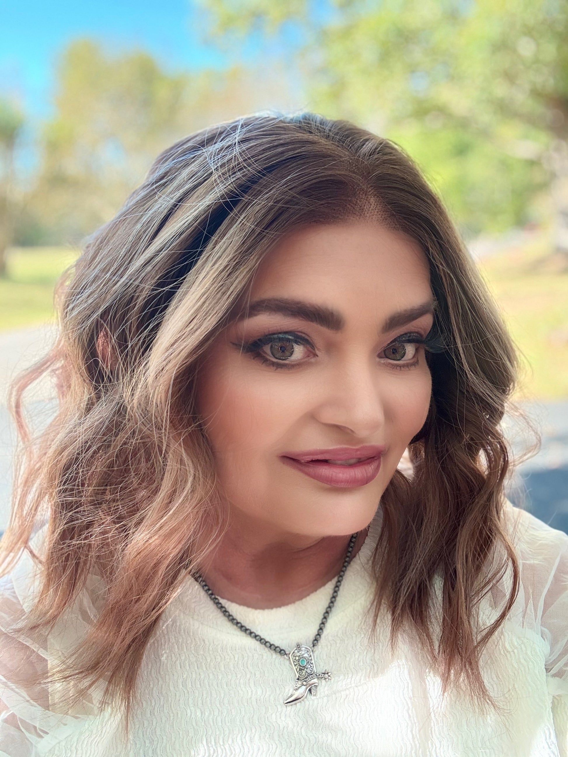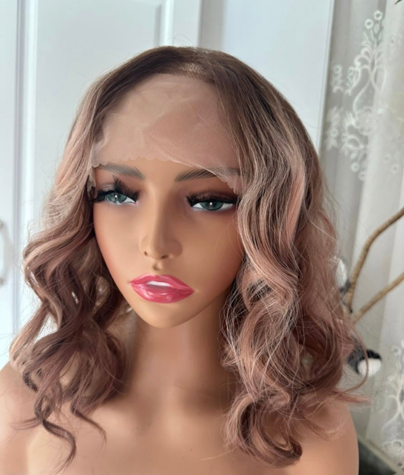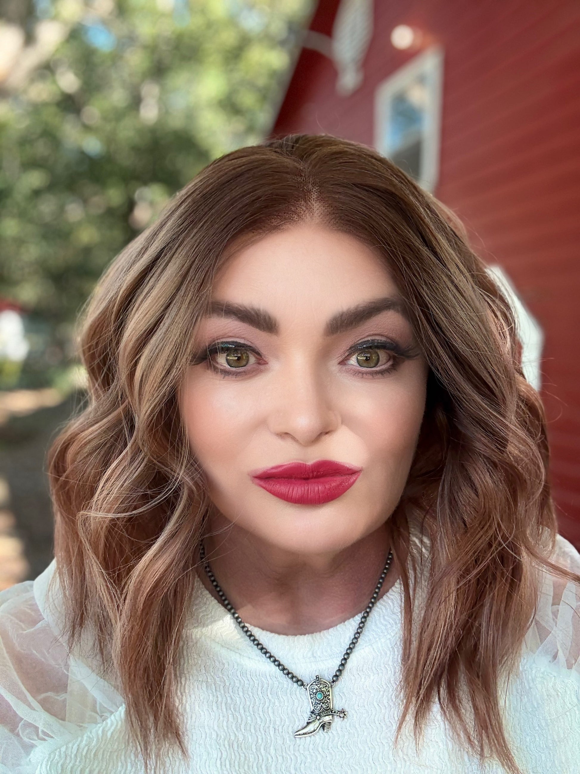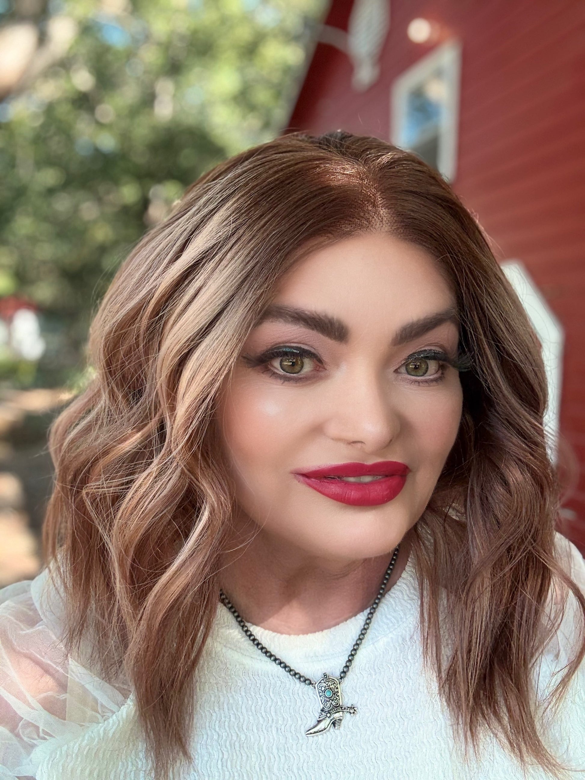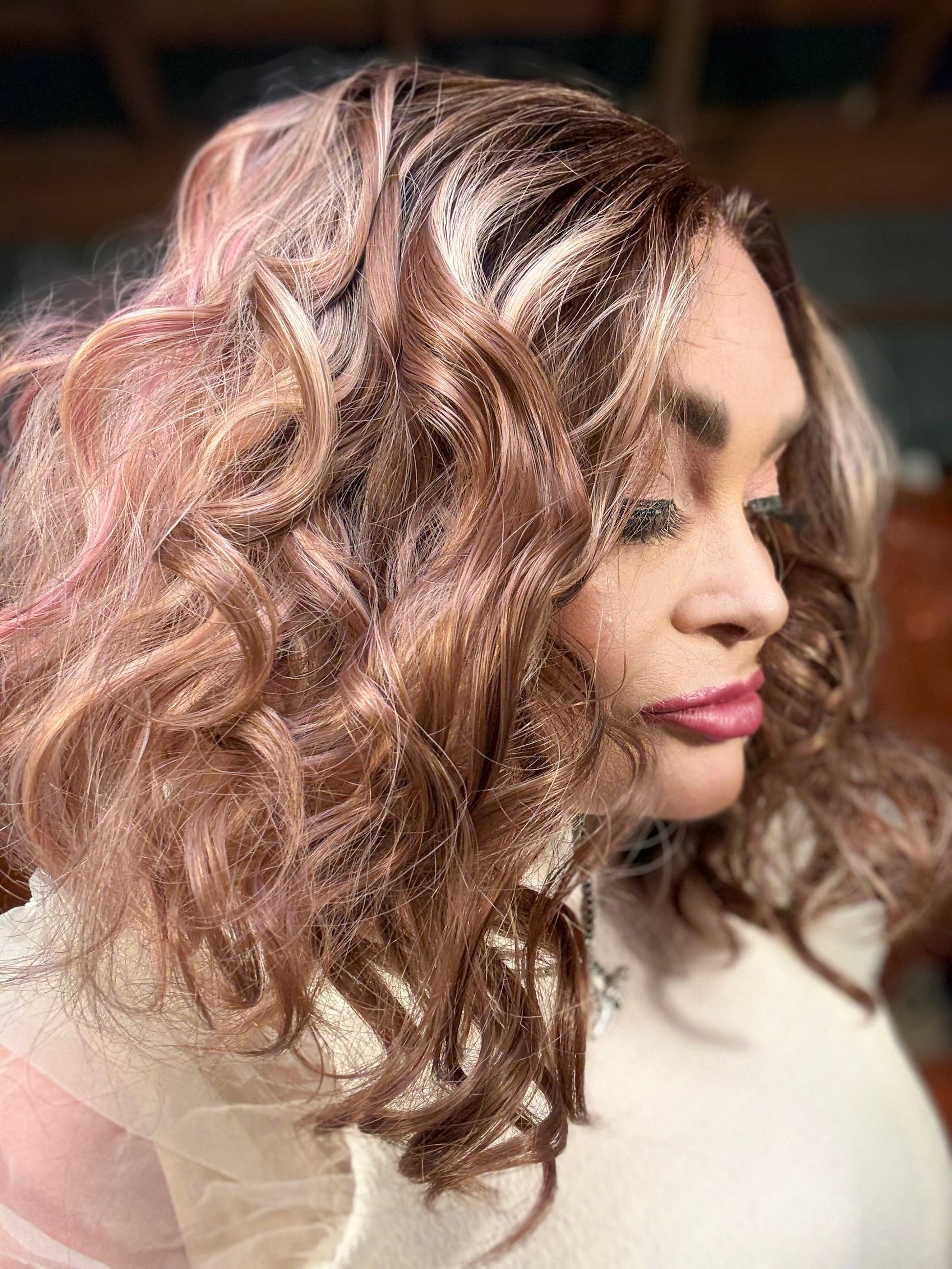 With stunning apricot coloring and plum low lights, SIESTA is a 14-inch synthetic lace front wig that features a free part and adjustable straps for a comfortable fit. Made with premium heat-resistant fibers, it offers versatile styling options for a natural look. Its loose curls and rooted design add extra volume and body.